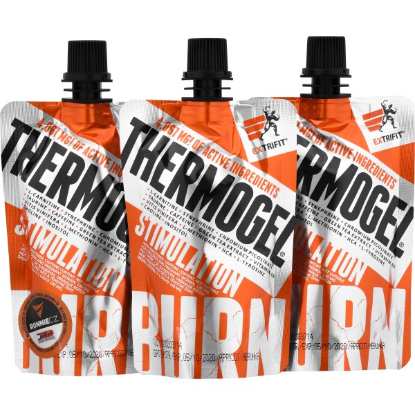 Gelová forma produktu je jednak velmi praktická – sáček si vezmete s sebou na trénink a na sportoviště a nezabere Vám žádné místo, ani si nemusíte počítat a odsypávat žádné tablety jednotlivých suplementů (kofein, carnitin, synefrin apod.). Thermogel obsahuje již přesně odměřenou dávku všech účinných látek a je připraven k okamžité konzumaci. Všechny účinné látky jsou navíc v této gelové formě velmi rychle a dobře stravitelné i vstřebatelné pro organismus, což je pro jejich maximální účinek v tu správnou chvíli, tedy při fyzické aktivitě, velmi důležité. Další výraznou výhodou je chuť produktu – zpestřete si před tréninkem svůj dietní režim jednou z 4 skvělých příchutí nebo příchutě pokaždé střídejte!